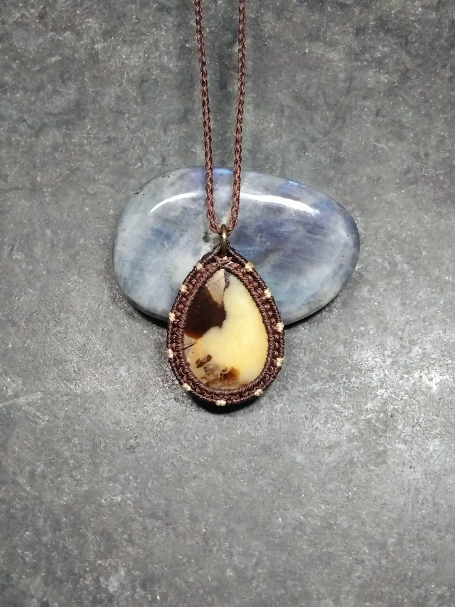 Collier réglable en macrame marron et paille avec du septaria !