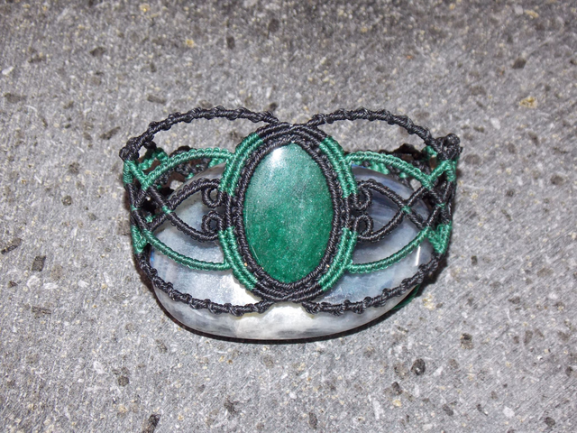 Bracelet réglable en macramé noir et émeraude avec de l'aventurine verte de top qualité !